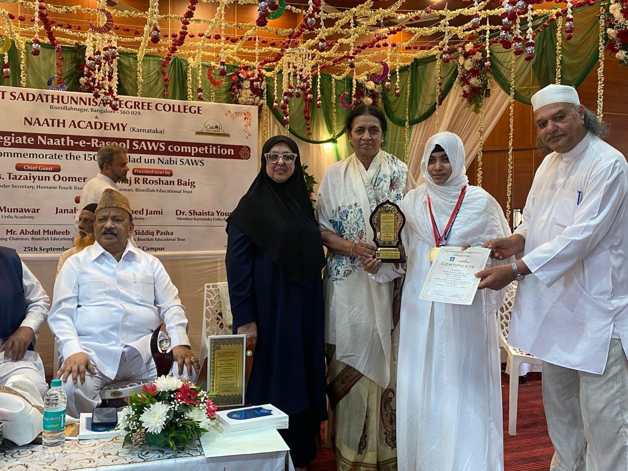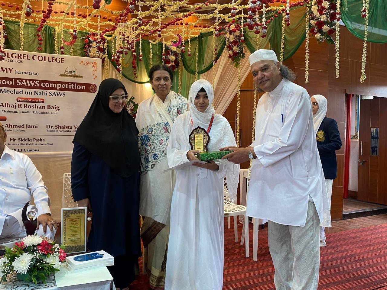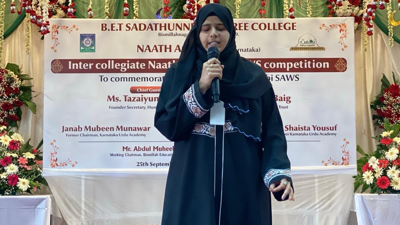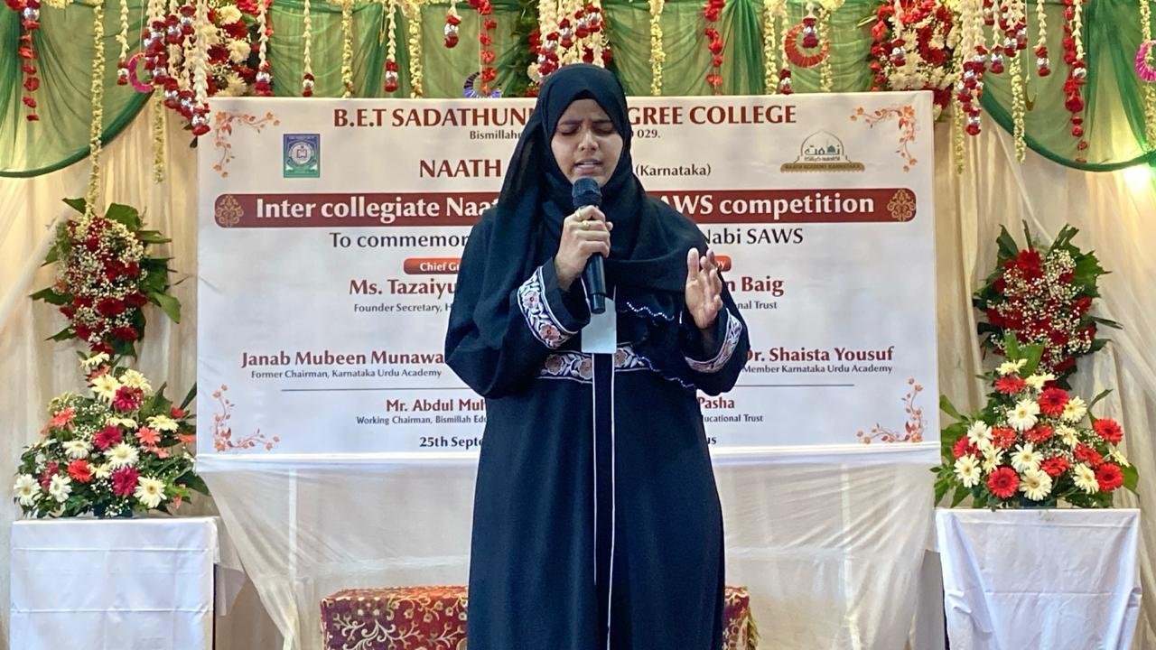 بیٹ اینڈ ناتھ اکیڈمی کرناٹک کے ذریعہ انٹر کالجیٹ نعت مقابلہ – آر روشن بیگ – تازہ عمر
