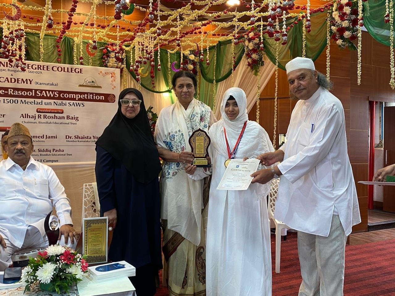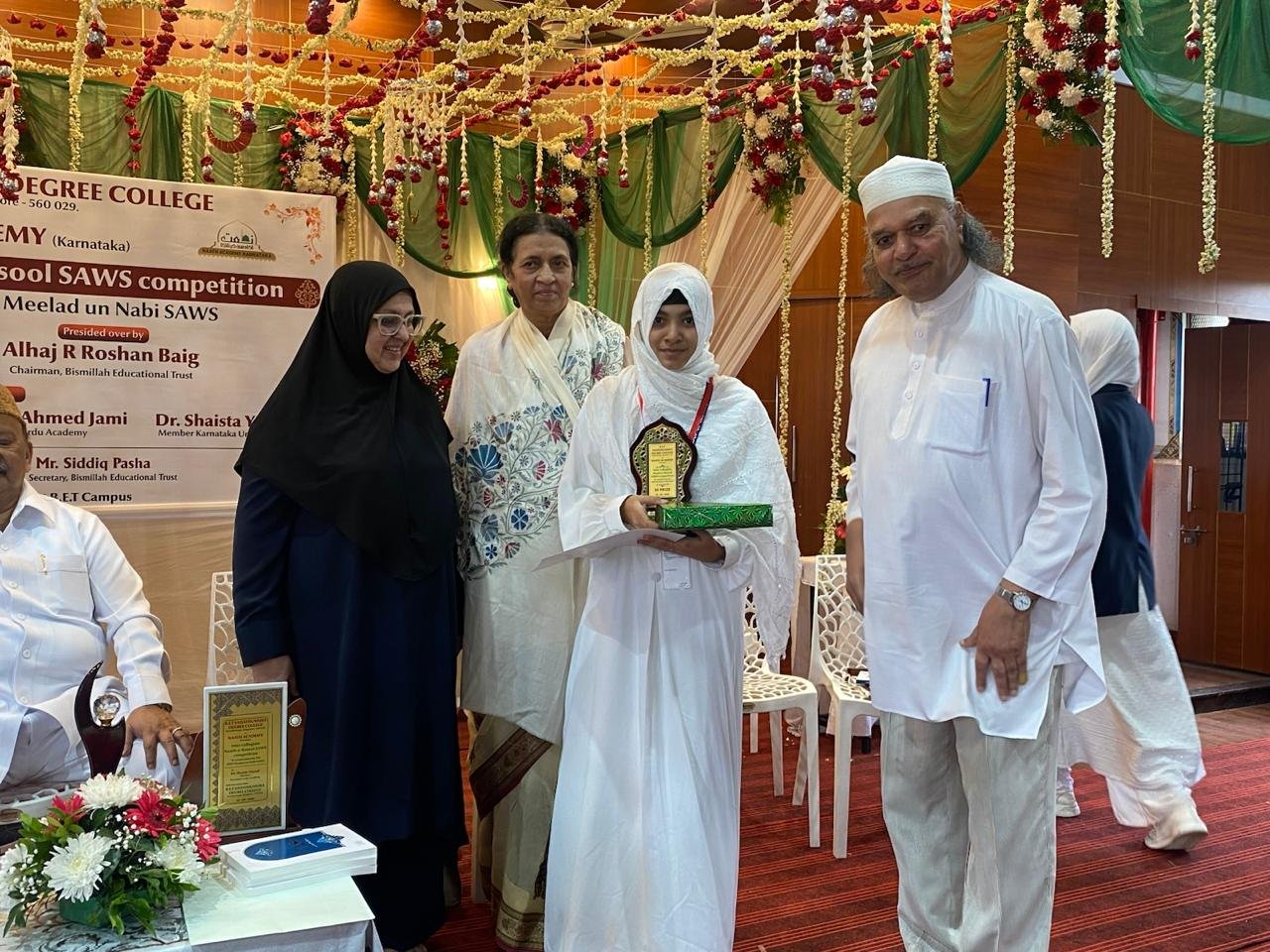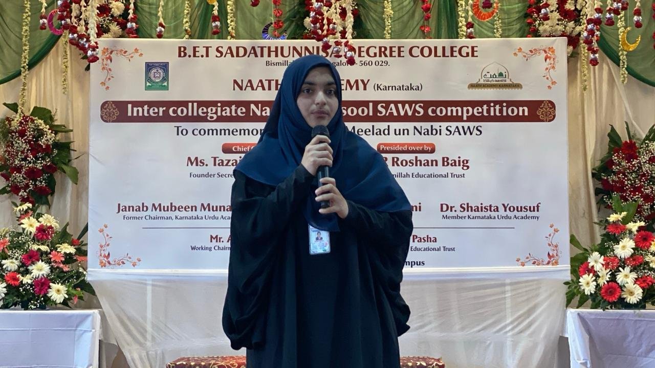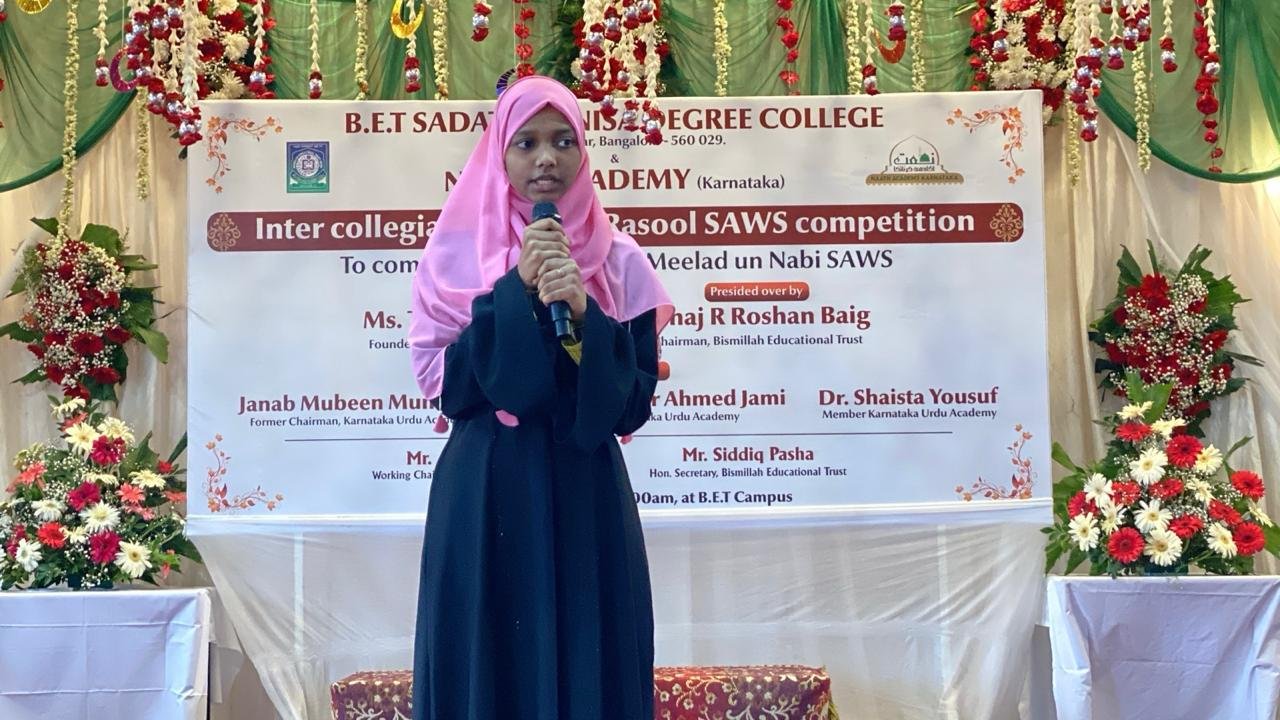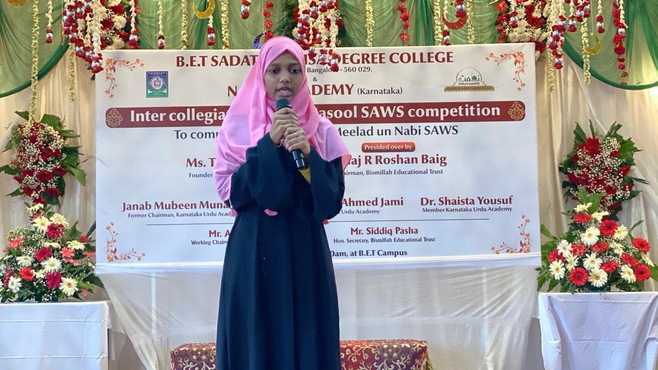 بیٹ اینڈ ناتھ اکیڈمی کرناٹک کے ذریعہ انٹر کالجیٹ نعت مقابلہ – آر روشن بیگ – تازہ عمر