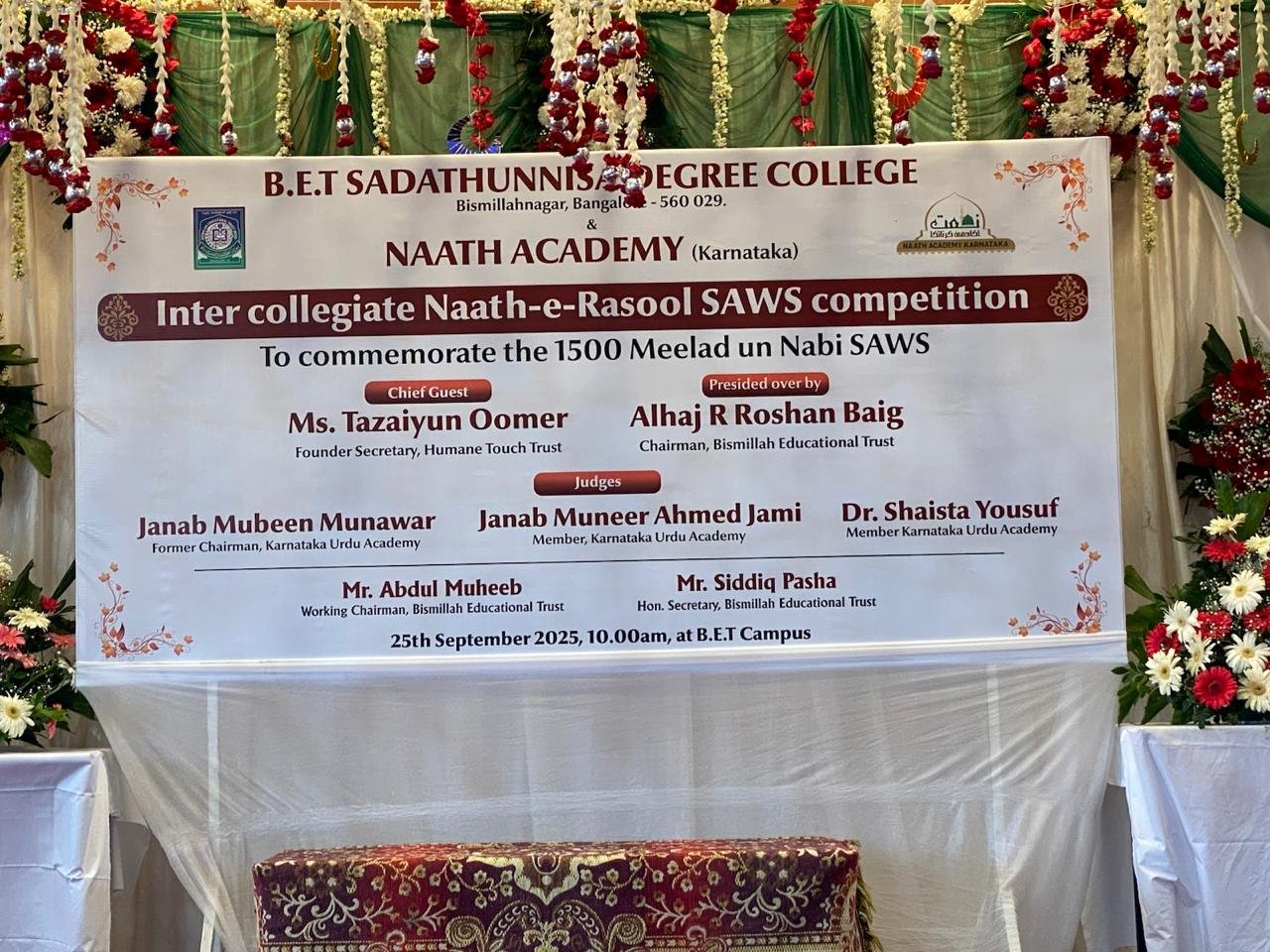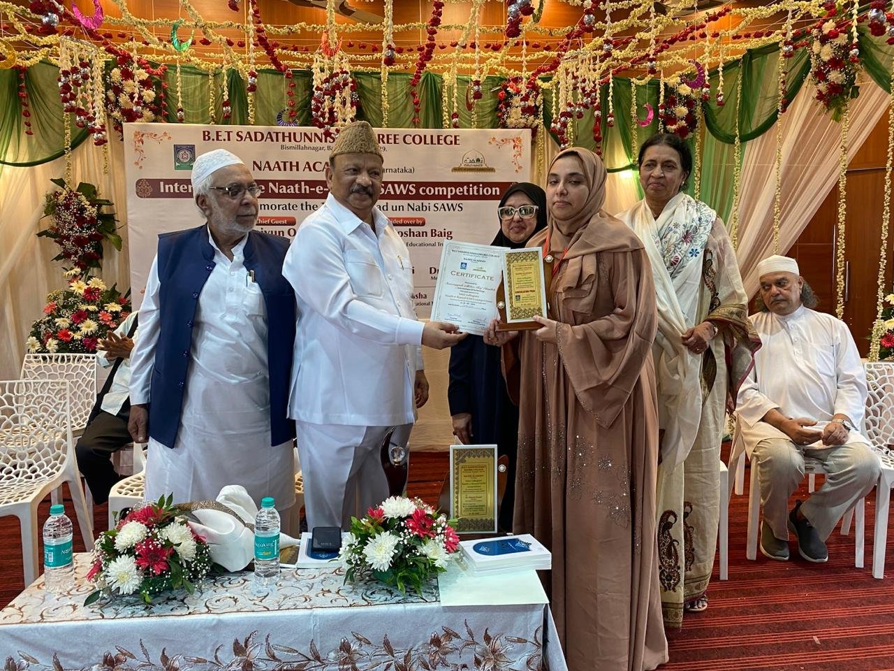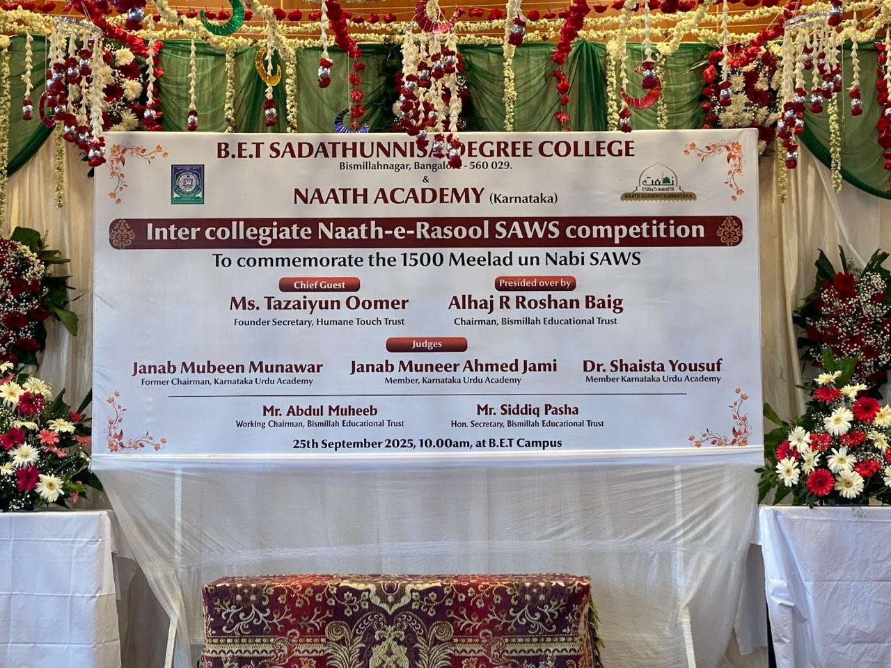 - Inter Collegiate Naat Competition by BET & Naath Academy Karnataka – R Roshan Baig – Tazaiyun Oomer