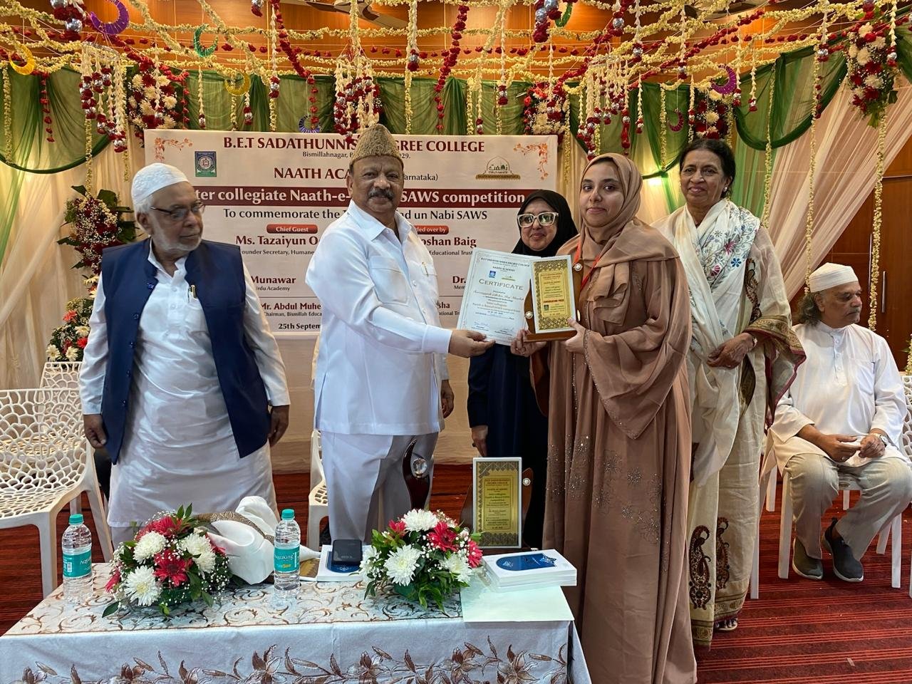 Inter Collegiate Naat Competition by BET & Naath Academy Karnataka – R Roshan Baig – Tazaiyun Oomer